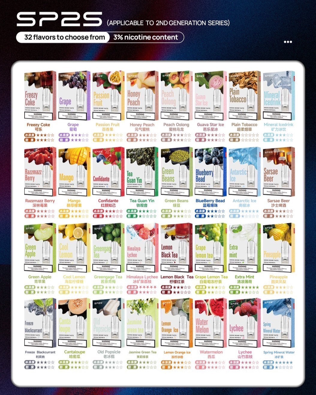 SP2蒐集使用者的口味推薦,讓SP2S的煙彈廣受好評,滿足不同偏好的需求。